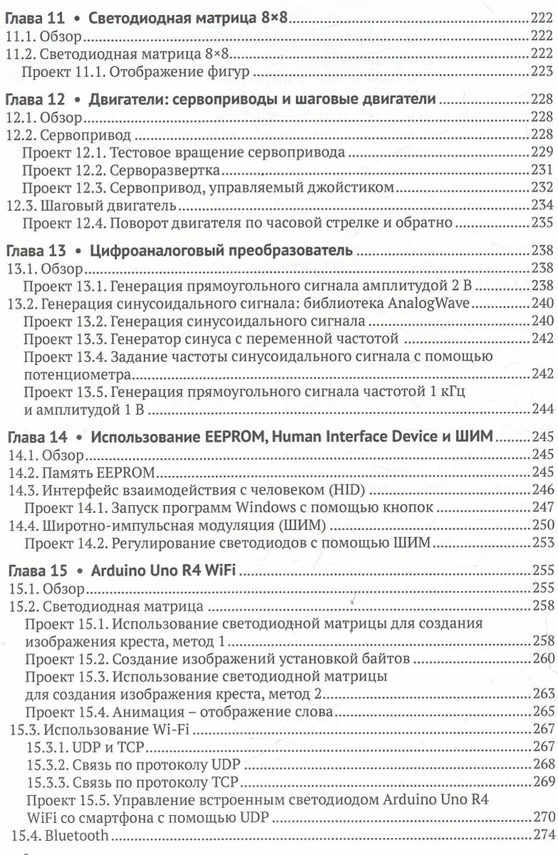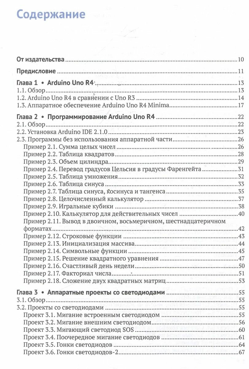 В книге рассказывается об использовании двух версий плат Uno R4 Minima и Uno R4 WiFi для разработки множества различных проектов с использованием всего лишь нескольких деталей и внешних модулей. Для всех проектов в книге предоставлены блок-схемы, принципиальные схемы, полные листинги программ на языке С и их краткие описания.