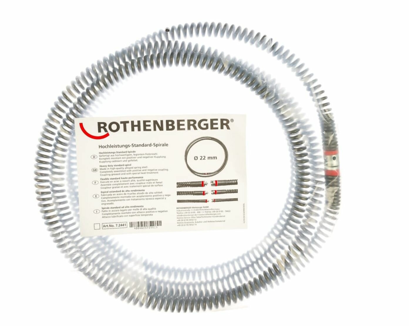 Спираль 22ммх4.5м для машин R600-R80 Rothenberger стандарт подходит для коротких, узких отводов. Плотная навивка спирали исключает сцепление витков между собой. Спираль предназначена для электрических прочистных машин Rothenberger R600-R80.