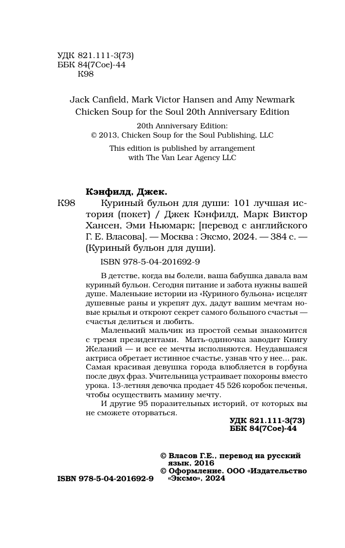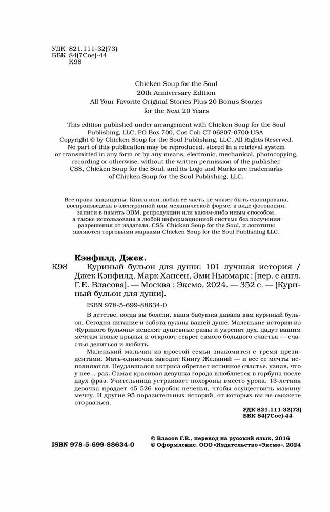 Куриный бульон для души: 101 лучшая история (Хансен Марк Виктор, Ньюмарк Эми, Кэнфилд Джек); ООО "Издательство "Эксмо", 2024