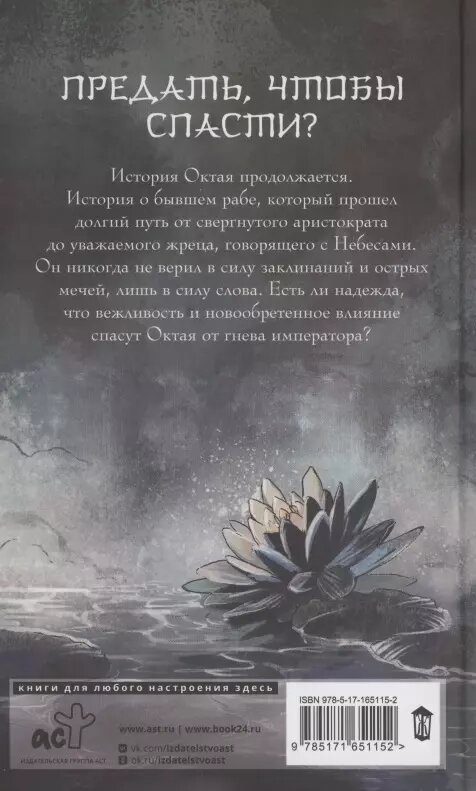 История Октая продолжается. История о бывшем рабе, который прошел долгий путь от свергнутого аристократа до уважаемого жреца, говорящего с Небесами. Он никогда не верил в силу заклинаний и острых мечей, лишь в силу слова. Есть ли надежда, что его вежливость и новообретенное влияние спасут Октая от гнева императора?