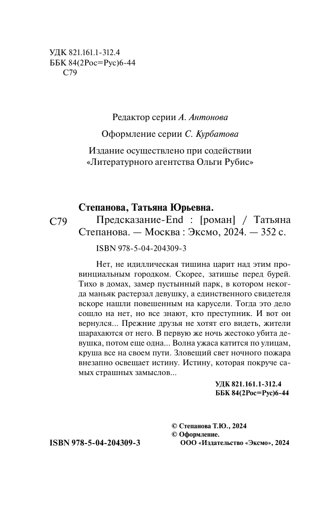 Книга: Предсказание-End (Степанова Татьяна Юрьевна); ООО "Издательство "Эксмо", 2024
