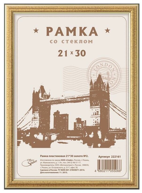 Рамка пластиковая OfficeSpace 21*30 см №2 золото (222161)