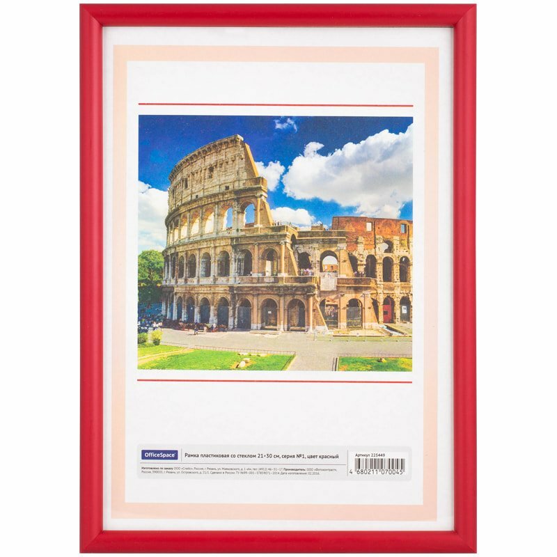 Рамка пластиковая OfficeSpace 21*30 см №1 красная (225449)