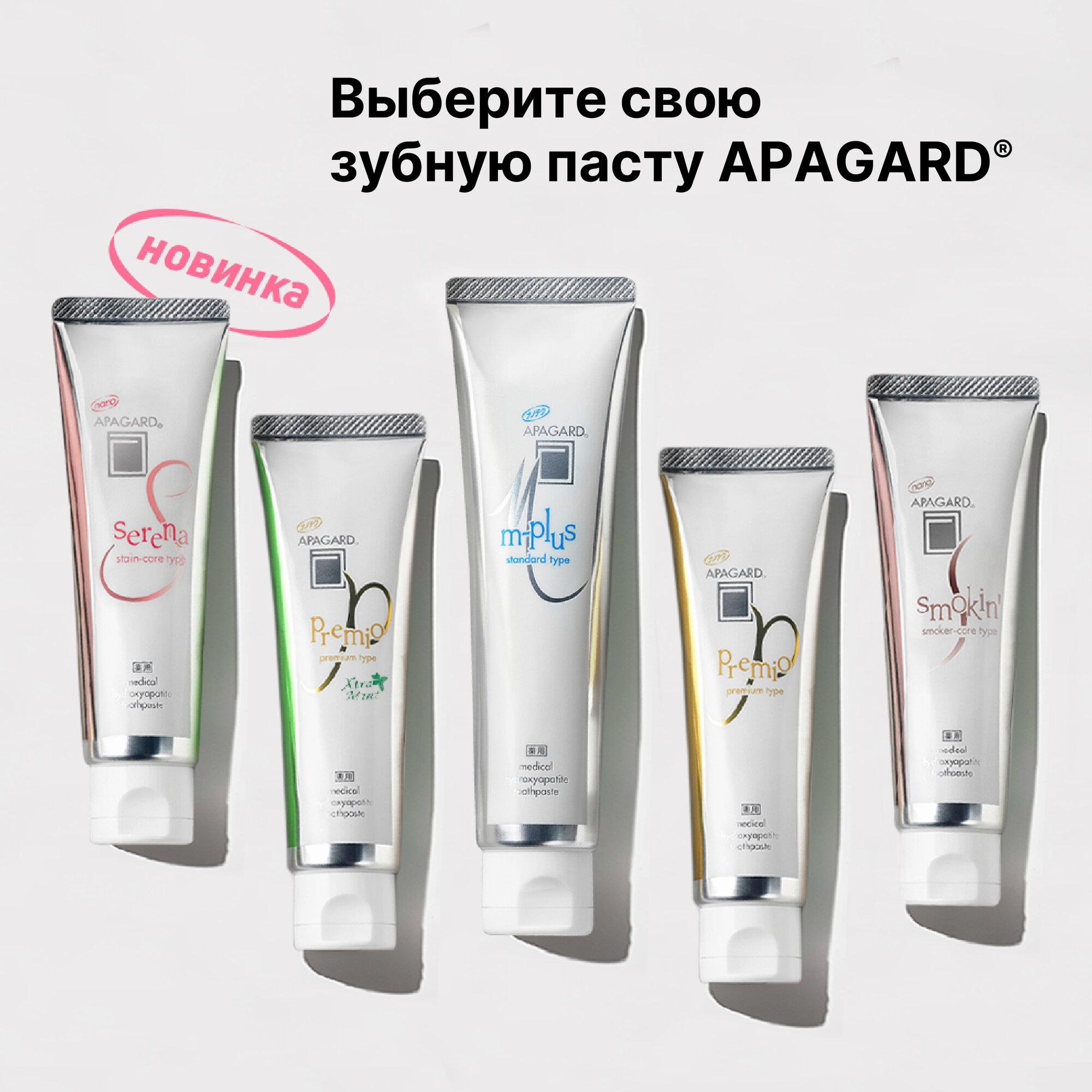 Apagard Smokin' - отбеливающая и укрепляющая зубная паста, созданная специально для курильщиков и любителей чая и кофе. Она удаляет въевшийся в эмаль пигментированный налёт, реминерализирует зубы и надолго освежает дыхание. Smokin' - самая яркая зубная паста в линейке Apagard. Компоненты ее состава подобраны для эффективного и безопасного очищения зубов от следов кофе, красного вина, сигарет и других окрашивающих эмаль продуктов. Главное действующее вещество паст Apagard - медицинский нано-гидроксиапатит (nano-mHAP®). Он идентичен гидроксиапатиту, который входит в состав костей и зубов (составляет 96% эмали). Медицинский нано-гидроксиапатит в зубных пастах обладает тройным действием: восстанавливает минеральный баланс ослабленной эмали, заполняет микротрещины в зубах и легко удаляет налет. - Поливинилпирролидон препятствует окрашиванию эмали.- Макрогол 400 эффективно удаляет пятна от табака, кофе, чая, красного вина, ягод и т.д.- Β-глицирризиновая кислота борется с бактериями и оказывает противовоспалительный эффект.- Цетилпиридиниум хлорид увлажняет слизистую оболочку полости рта, предотвращает воспаление десен.Преимущества зубной пасты Apagard Smokin':- Высокая концентрация Nano-mHAP восстанавливает эмаль и удаляет зубной налет.- Признана пастой №1 среди отбеливающих паст в Японии .- Не содержит фтора и парабенов.- Не содержит искусственных красителей.