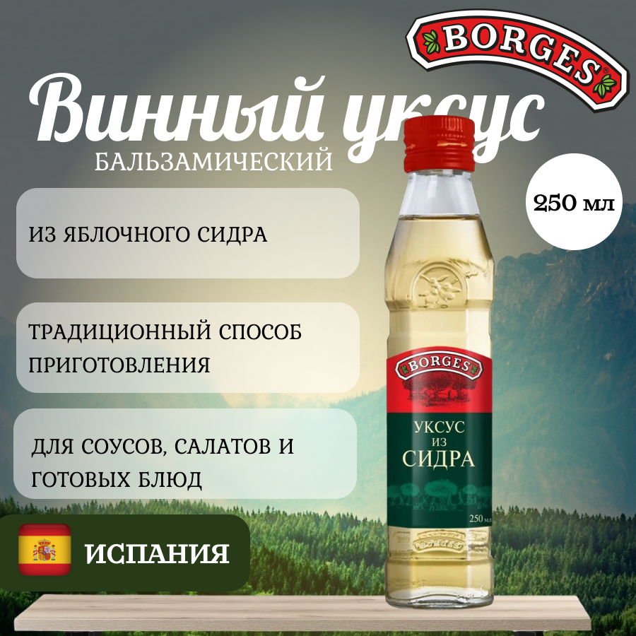 Уксус Borges из яблочного сидра, изготовленный из отборных ингредиентов традиционным способом, станет прекрасным дополнением для холодных блюд, идеально подходит для приготовления соусов и заправки салатов.