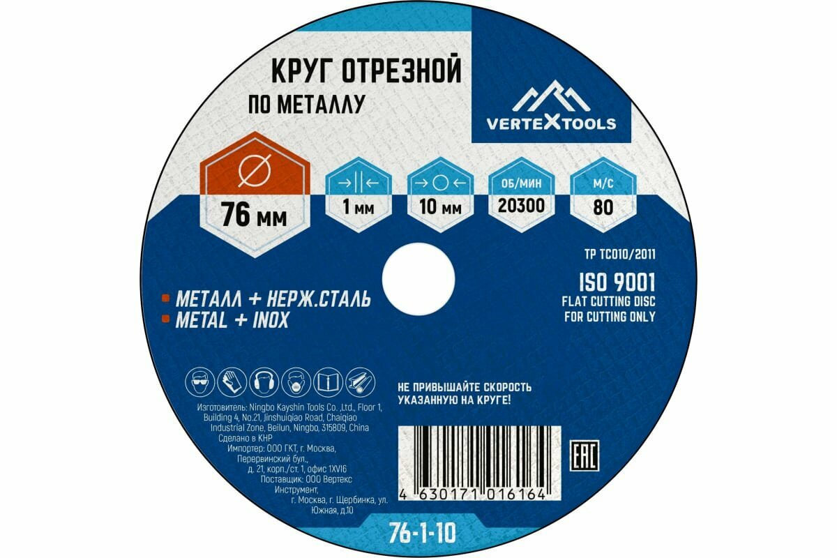 Круг отрезной по металлу Vertextools 76x10x1 мм (76-1-10)