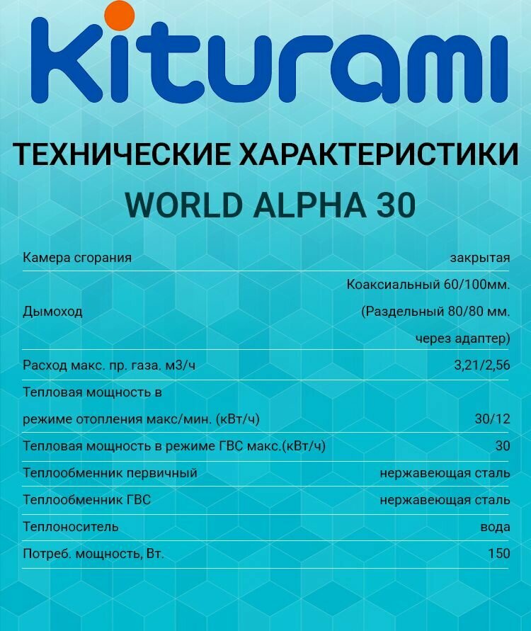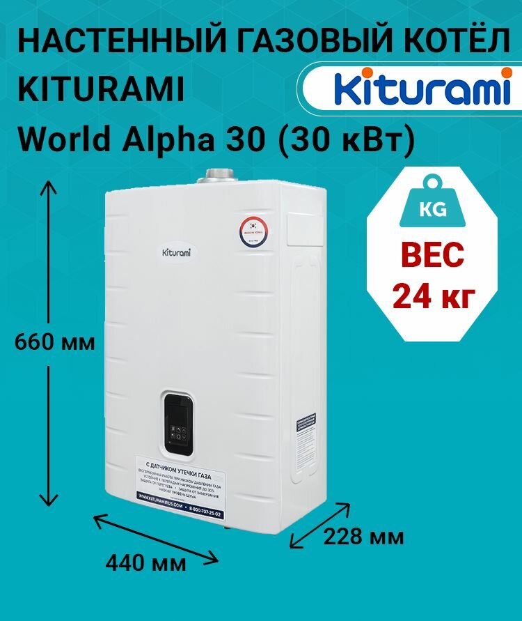 Газовый котел конвекционный 30 кВт Kiturami World Alpha-31 A21E220262 двухконтурный настенный