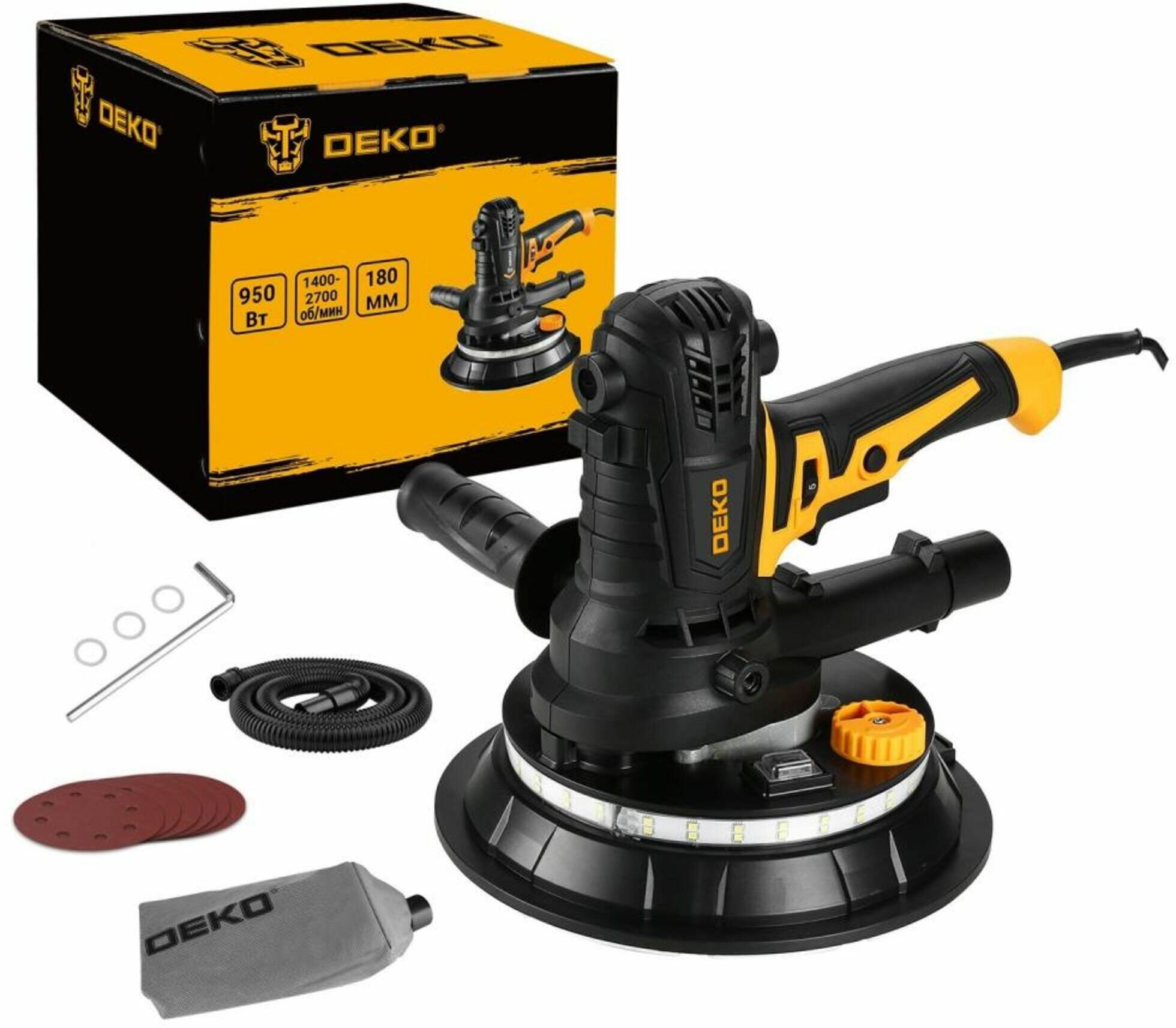 Машина шлифовальная для стен и потолков сетевая Deko DKWS950 950 Вт 180 мм