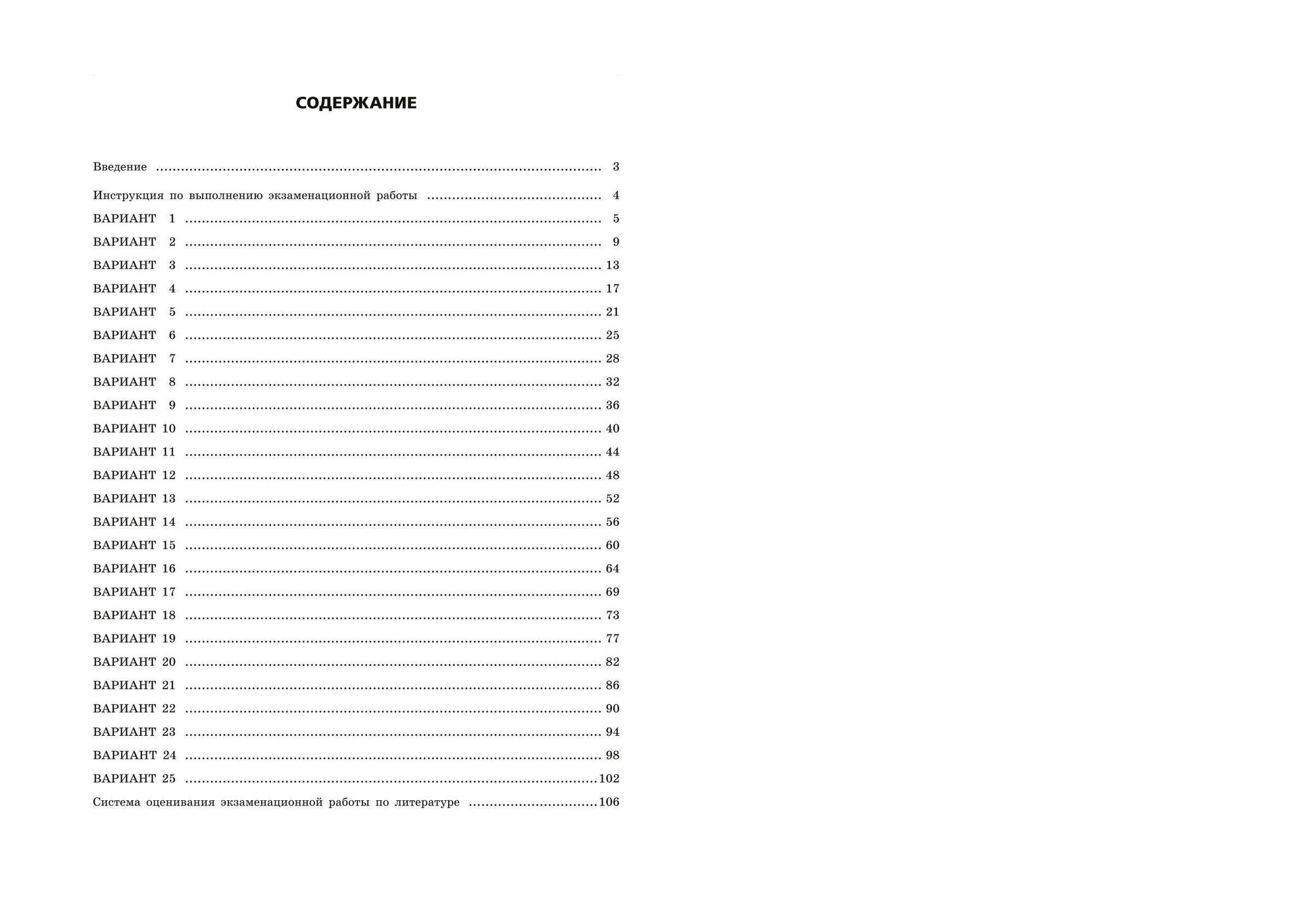 Пособие содержит 25 тренировочных вариантов по литературе, соответствующих структуре экзаменационной работы и составленных с учетом требований ОГЭ. Каждый вариант включает задания разных типов и уровней сложности.