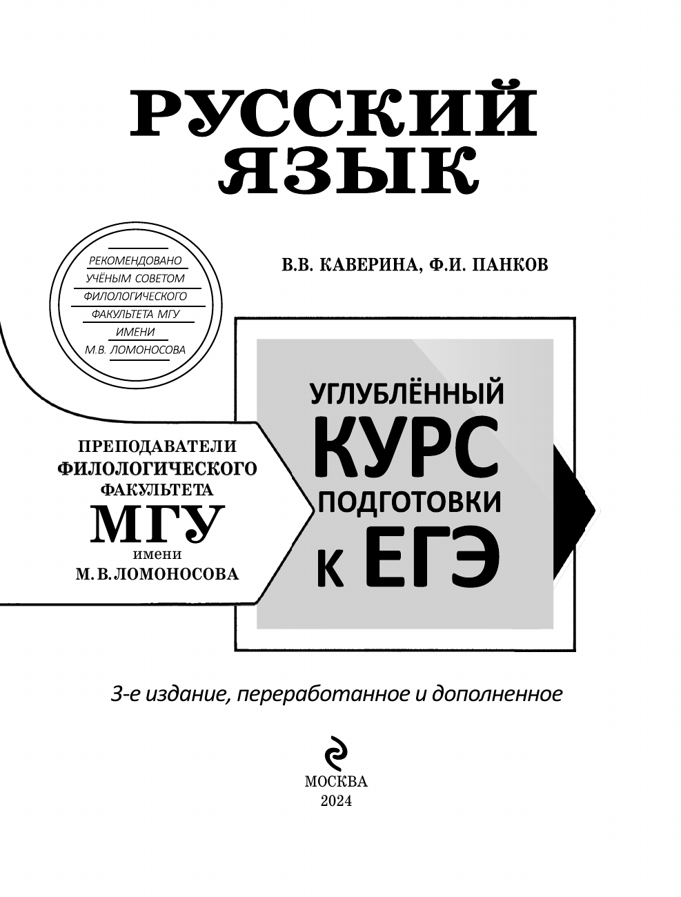 Русский язык. Углубленный курс подготовки к ЕГЭ (Каверина Валерия Витальевна, Панков Федор Иванович); ООО "Издательство "Эксмо", 2024