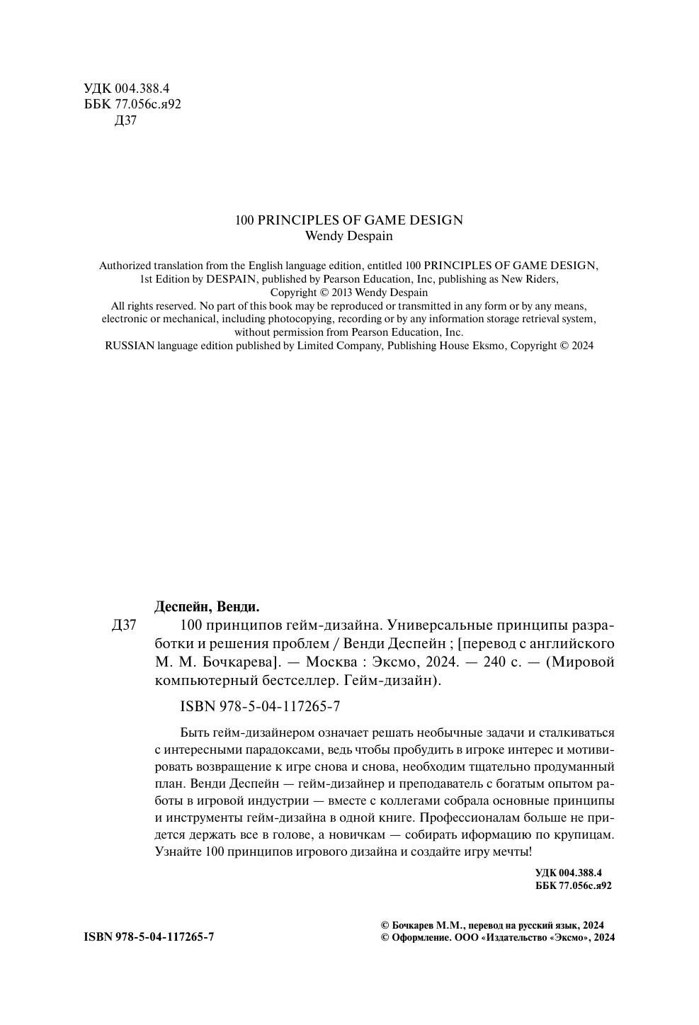 100 принципов гейм-дизайна. Универсальные принципы разработки и решения проблем (Венди Деспейн); ООО "Издательство "Эксмо", 2024