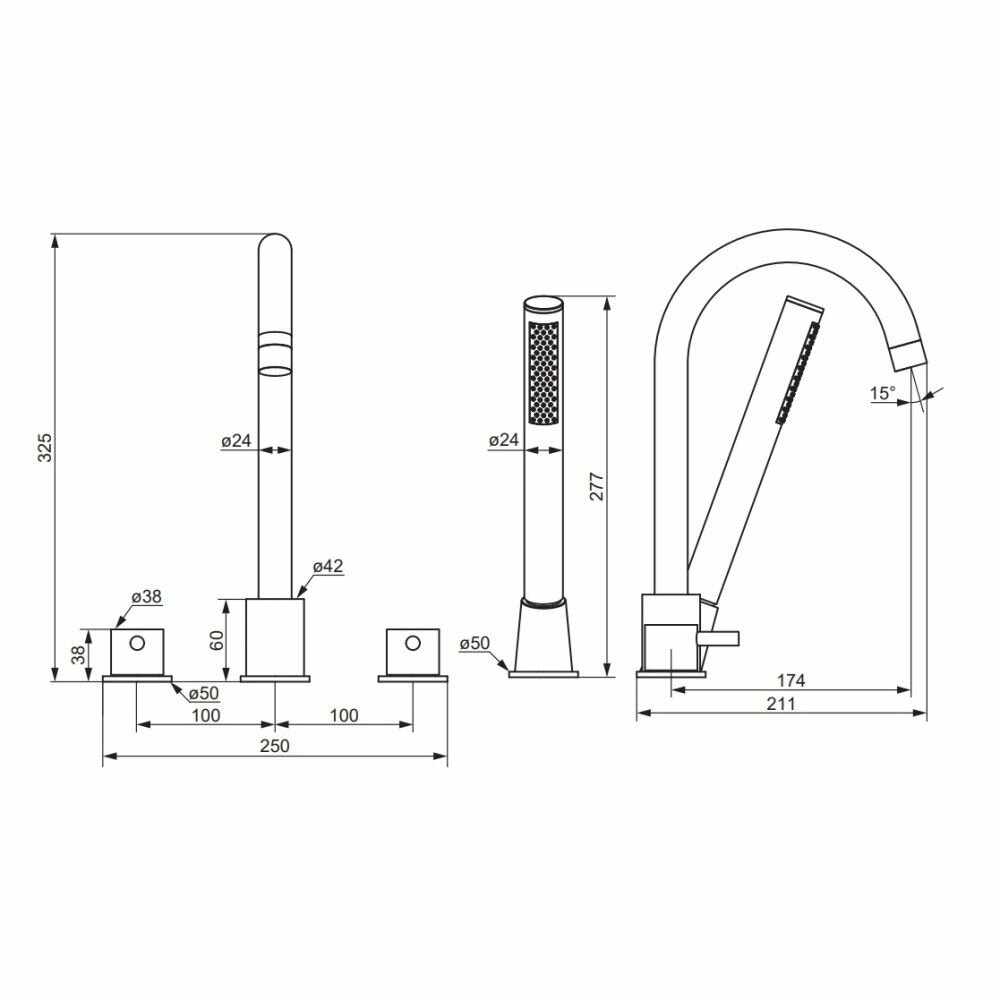 Смеситель на борт ванны Damixa Scandinavian Pure хром 360400000