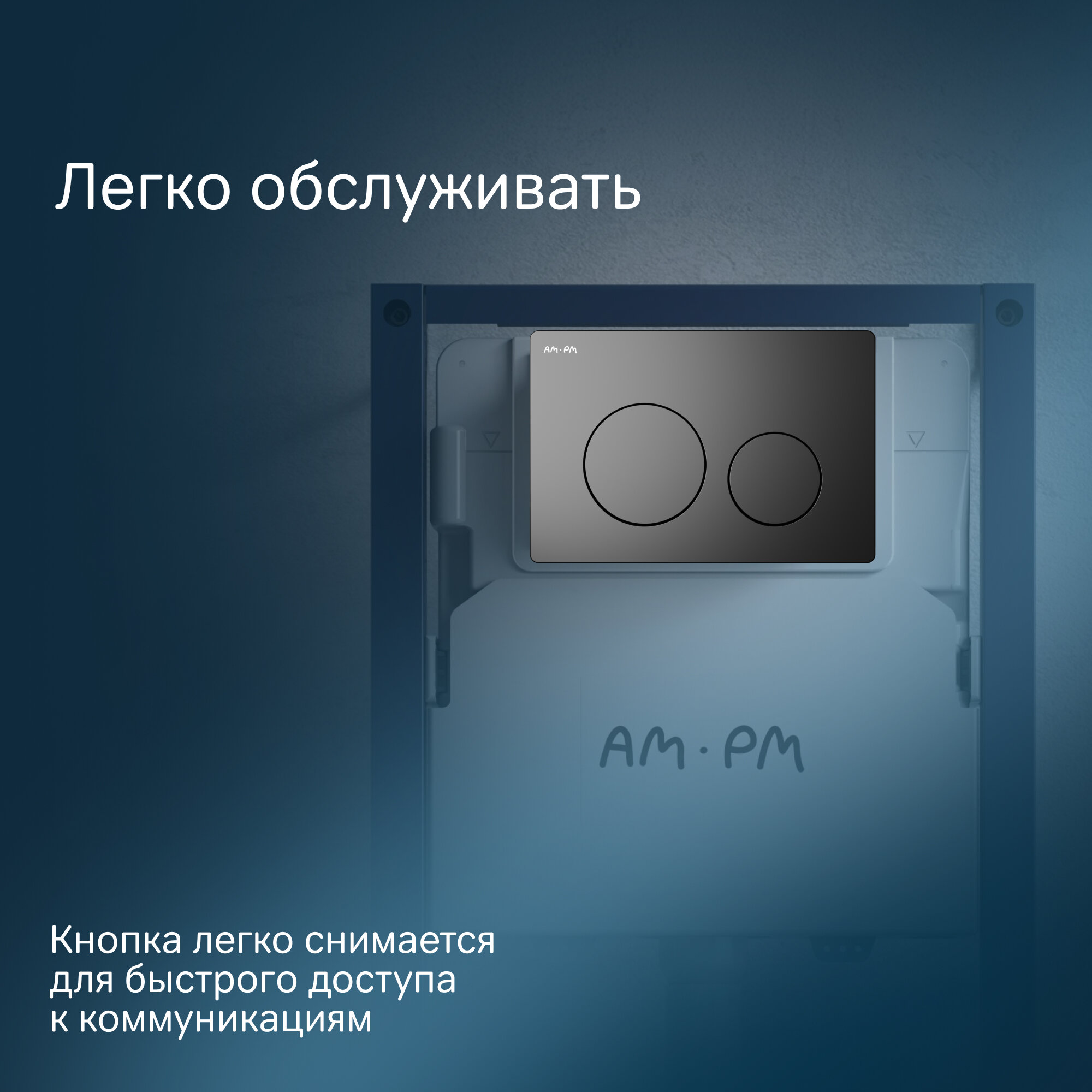 Двойной смыв - 3/6 л.Механический принцип работы, все крепления в комплекте.Клавиша подходит для инсталляции AM.PM PrimeFit I012709.