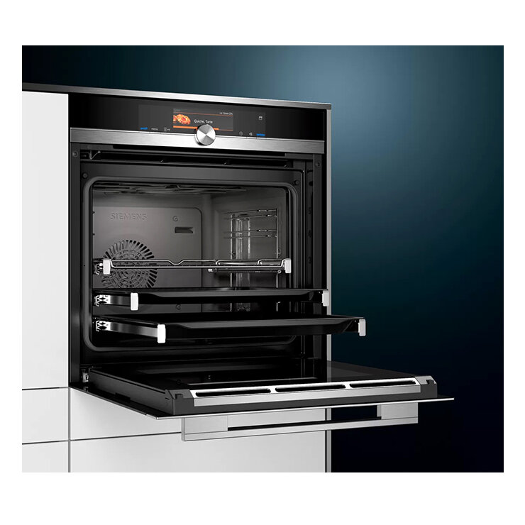 Практичная и эстетичная новинка серии IQ 700 выполнена в лаконичном дизайне. Сочетание нержавеющей стали и черного стекла смотрится стильно и современно. Конструкция данной модели предусматривает режим 100% пар fullSteam , при котором сохраняется вкус и полезные свойства продуктов, и возможность комбинирования горячего воздуха и пара pulseSteam, что позволяет получить сочные блюда с хрустящей корочкой. Меню dishAssist с цветной анимацией и программатор rotaryControl обеспечивают удобство управления.