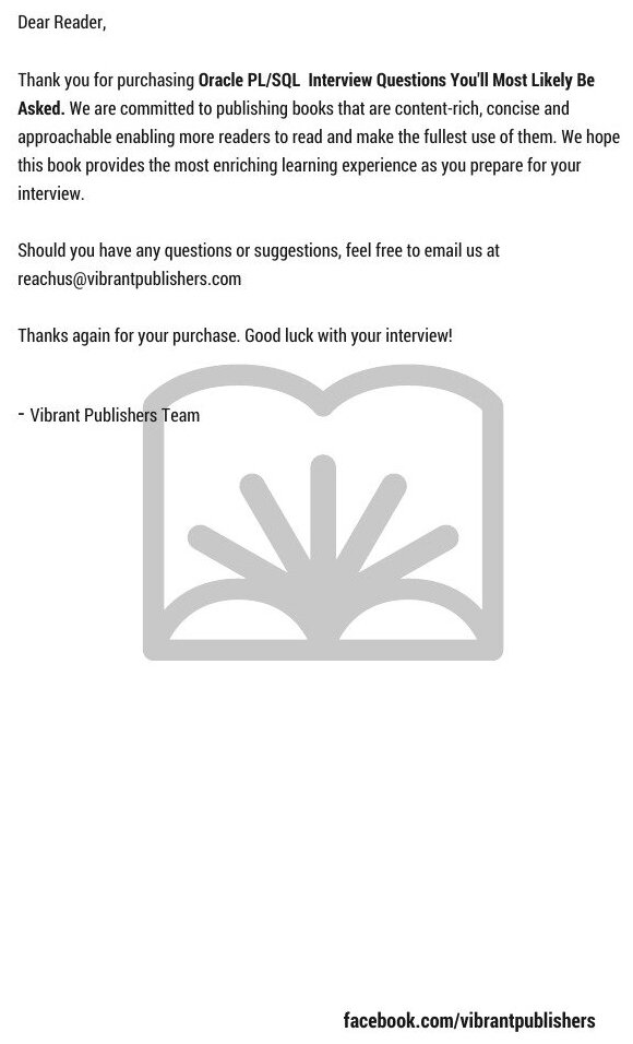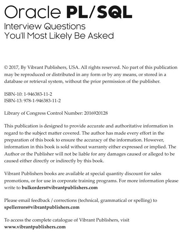 ORACLE PL/SQL Interview Questions You'll Most Likely Be Asked (Vibrant Publishers)