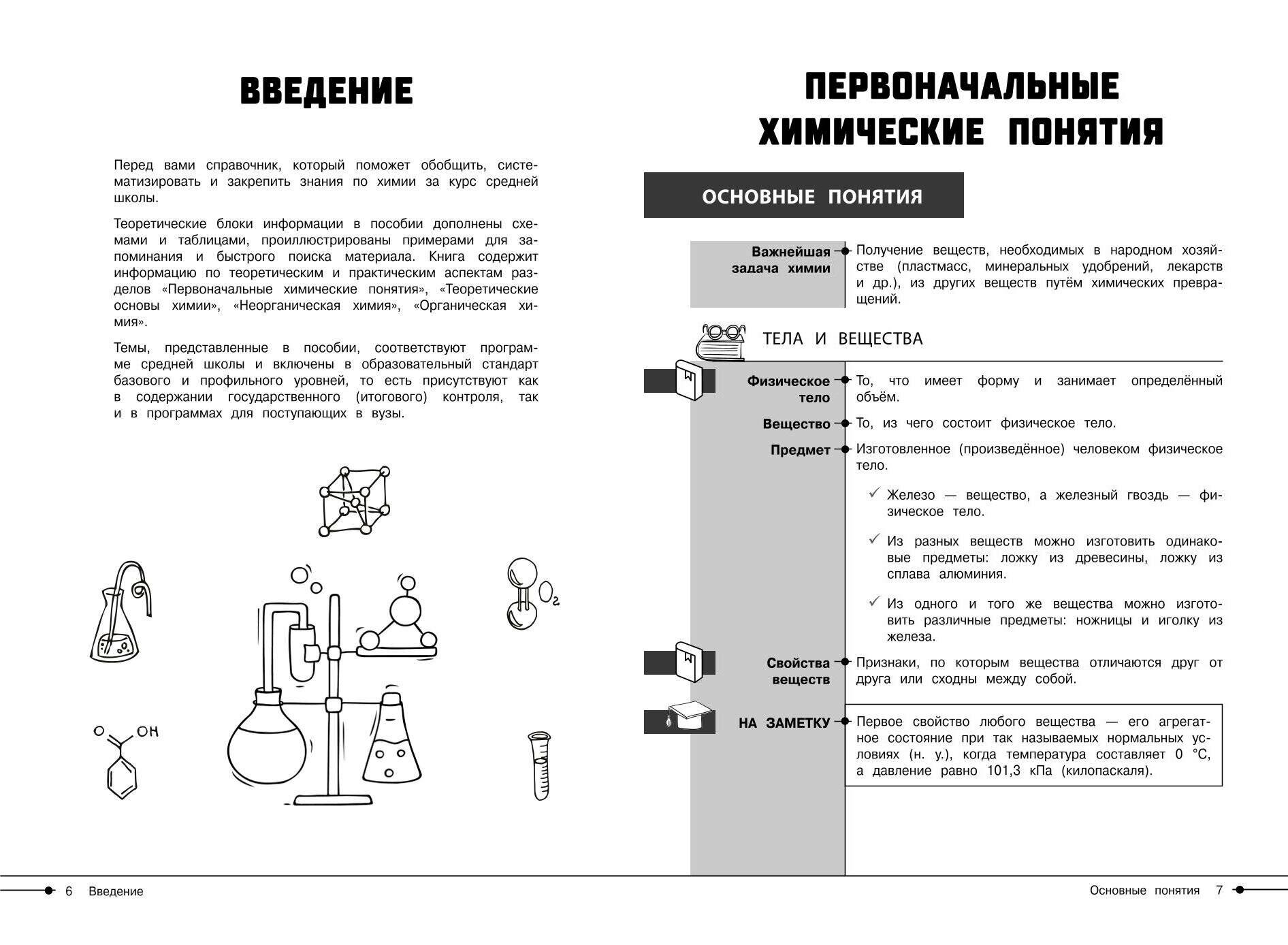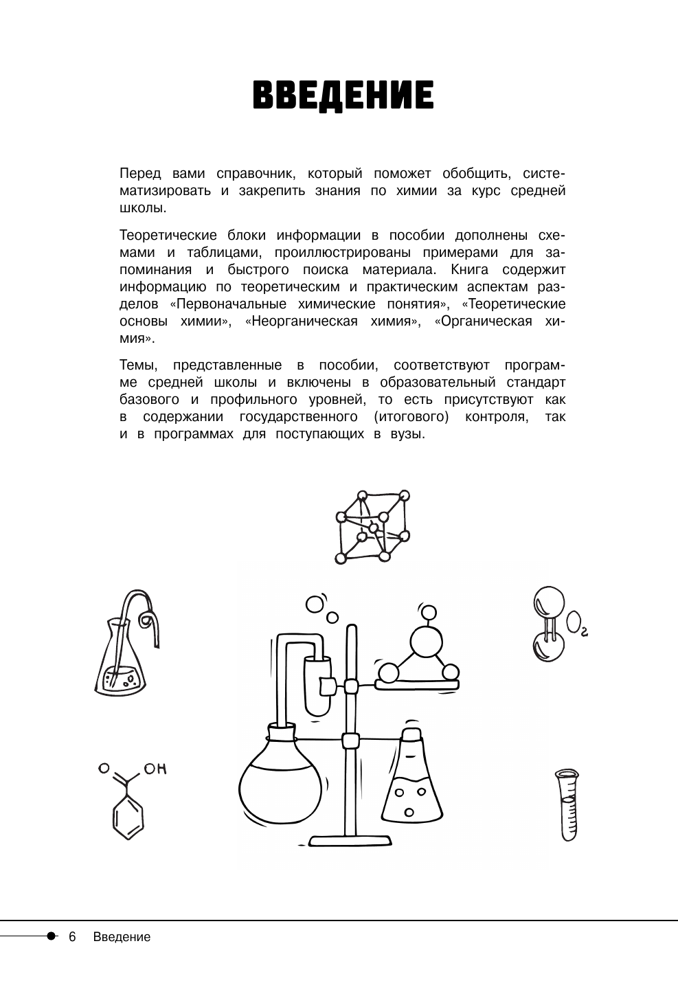 Она представит материал школьного курса химии за 8—11 классы в доступном изложении, а особый макет издания выделит главное и структурирует информацию для наилучшего запоминания. Активные поля обеспечат быстрый и точный поиск информации, сохраняя ваше время и увеличивая продуктивность. В справочнике вы найдете важные сведения по разделам «Первоначальные химические понятия», «Теоретические основы химии», «Неорганическая химия», «Органическая химия». Теоретические блоки сопровождаются примерами, схемами и таблицами для комплексной подготовки к ОГЭ и ЕГЭ по химии.