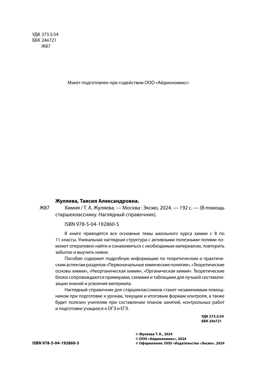 Книга: Химия (Жуляева Таисия Александровна); ООО "Издательство "Эксмо", 2024