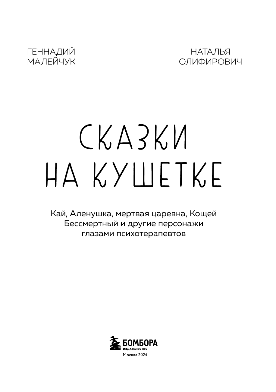 Сказки на кушетке. Кай Аленушка Мертвая Царевна Кощей Бессмертный и другие персонажи глазами психотерапевтов (Наталья Ивановна Олифирович, Геннадий Иванович Малейчук); ООО "Издательство "Эксмо", 2024