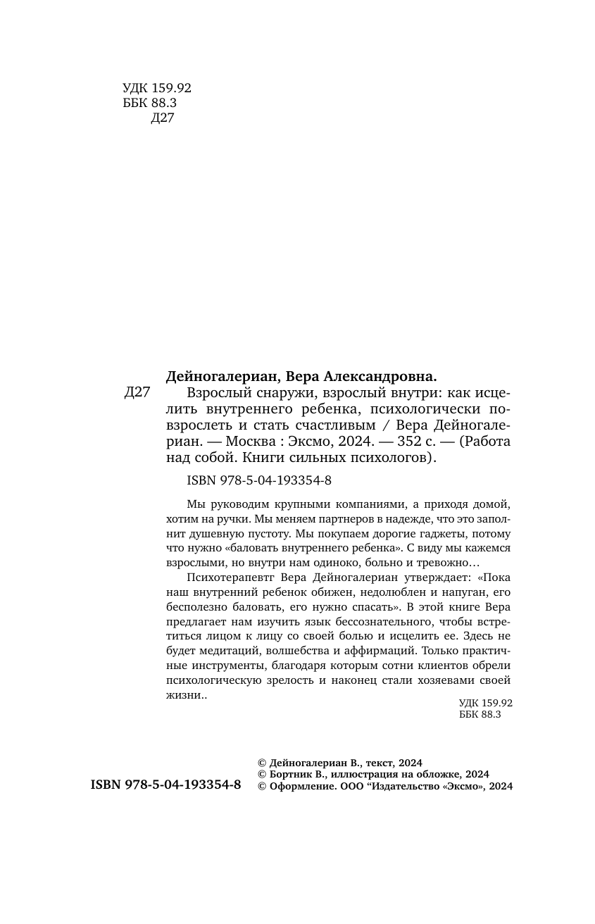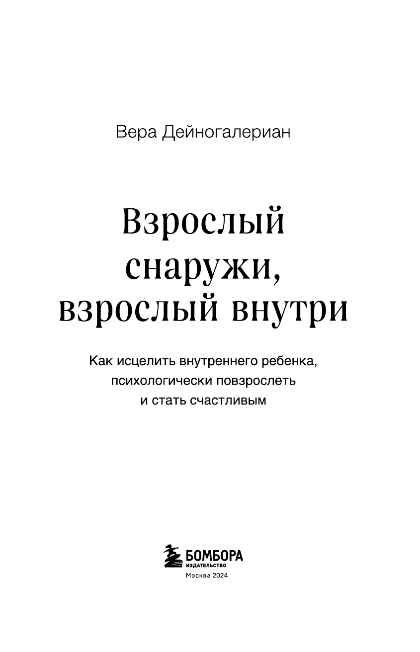 Взрослый снаружи взрослый внутри. Как исцелить внутреннего ребенка психологически повзрослеть и стать счастливым (Дейногалериан Вера Александровна); ООО "Издательство "Эксмо", 2024