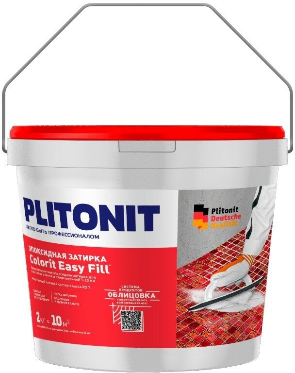 **Затирка эпоксидная Plitonit Colorit EasyFill** — трехкомпонентный состав. Применяется для работ внутри и снаружи помещений. Используется для ремонта и реконструкции жилых, общественных, коммерческих зданий и сооружений, складов, бассейнов, учебно-воспитательных и курортно-профилактических центров и т. д. Предназначена для заполнения швов и стыков шириной от 1 до 10 мм между плитками, каменными и керамическими полотнами, уровень водопоглощения которых составляет 0,05% и меньше.