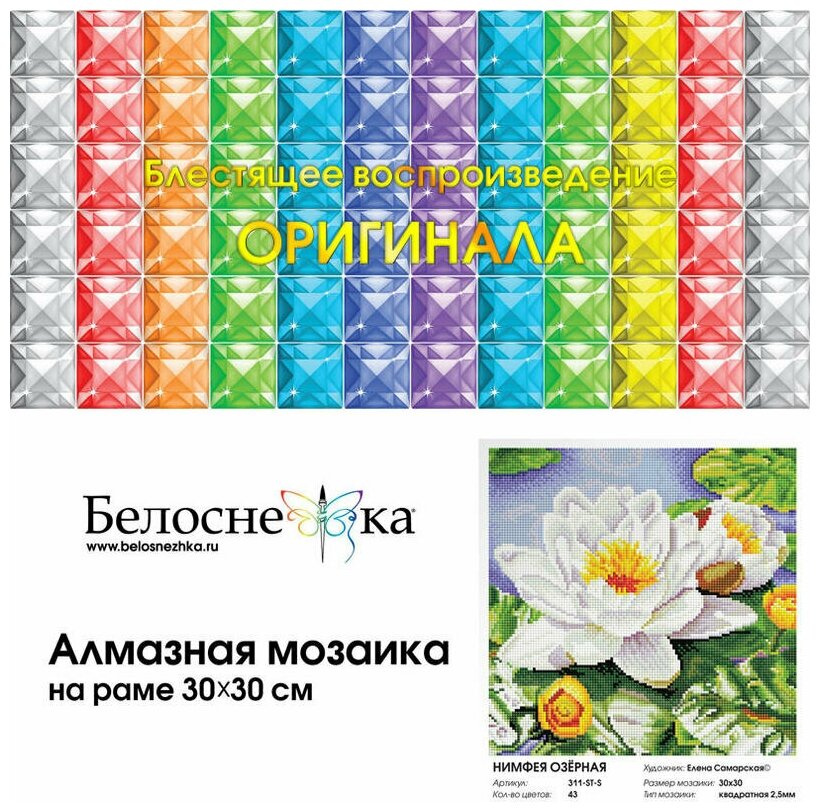 На сегодняшний день товар «Картина мозаикой Белоснежка Нимфея озерная 30x30 см 311-ST-S» можно купить с кешбеком в 1 магазине: Яндекс.Маркет