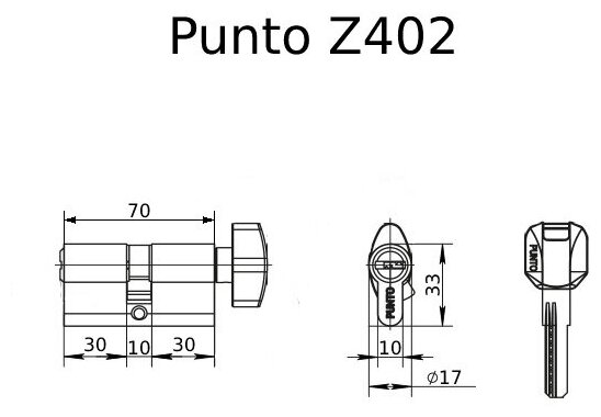 Механизм цилиндровый Punto Z402 30И10И30 цвет латунь