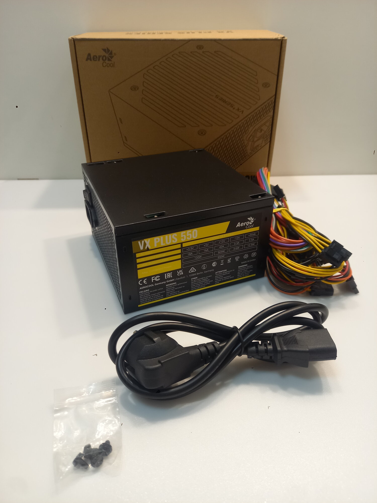 Блок питания Aerocool VX-550 – компактная модель, предназначенная для установки в верхнюю или нижнюю часть корпусов стандарта ATX. В нем предусмотрены достаточное количество разъемов для подключения всех комплектующих, а также высокоэффективная система охлаждения с автоматическим управлением производительностью. Блок оборудован многоступенчатой системой защиты от перегрузок и коротких замыканий и поддерживает пассивную коррекцию фактора мощности.