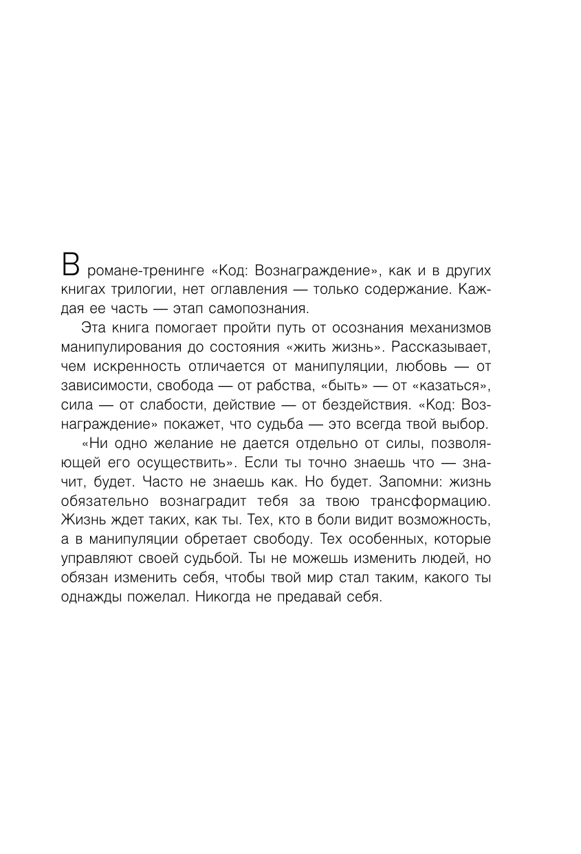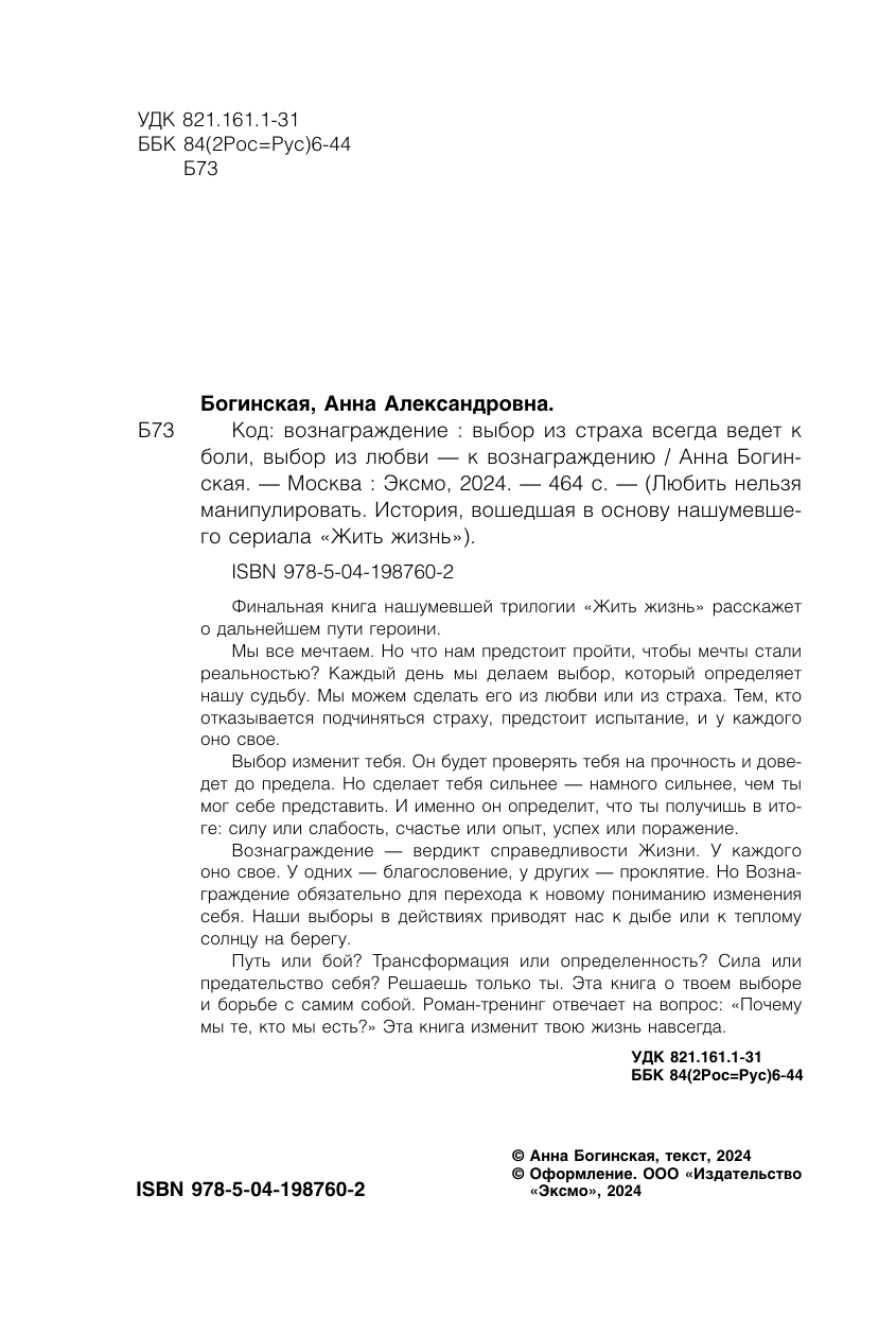 Код: вознаграждение. Выбор из страха всегда ведет к боли выбор из любви - к вознаграждению (Богинская Анна Александровна); ООО "Издательство "Эксмо", 2024