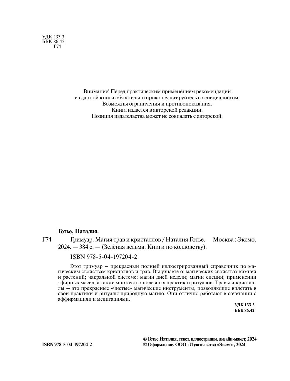 Гримуар. Магия трав и кристаллов (Готье Наталия); ООО "Издательство "Эксмо", 2024