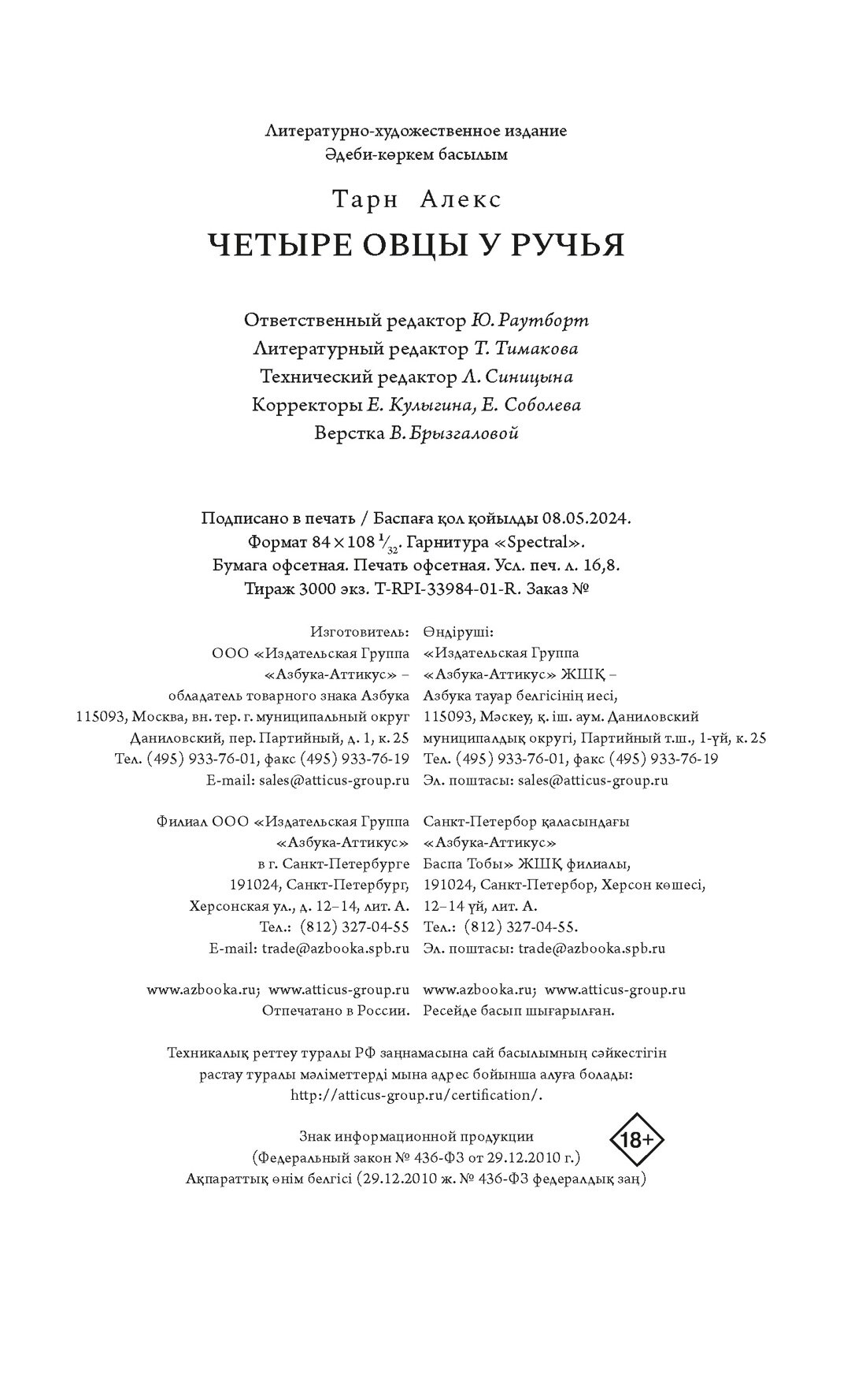 Книга: Четыре овцы у ручья (Алекс Тарн); Азбука, 2024