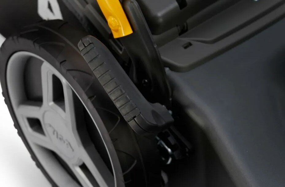 Газонокосилка позволяет использовать один из 4 режимов кошения: с задним выбросом, боковым выбросом, сбором или мульчированием срезанной травы, т. е. тщательным ее измельчением и равномерным распределением по газону в качестве естественного удобрения.Преимущества Регулировка высоты кошения выполняется централизованно с помощью специального рычага и не представляет сложности Задние колеса большого диаметра (280 мм) упрощают маневрирование на неровном участке Благодаря инновационной конструкции рукоятка поворачивается на 25° от деки, что позволяет косить под живой изгородью и вдоль стен без риска поцарапаться или испачкаться