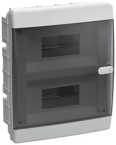 **Щит распределительный встраиваемый IEK** ЩРВ-П-24 предназначен для установки модульного оборудования. Корпус из высокопрочных, устойчивых к высоким температурам материалов, сохраняет функции и привлекательный внешний вид при долгой эксплуатации. Конструкторы оснастили модульный корпус изделия прозрачным окошком, что позволяет визуально оценить состояние приборов. Щит не боится попадания прямых солнечных лучей, хорошо переносит вибрации и иные механические воздействия, легко монтируется и исправно выполняет свои функции. Суппорт для шин защищает от соприкосновения с токопроводящими элементами во время обслуживания устройства.