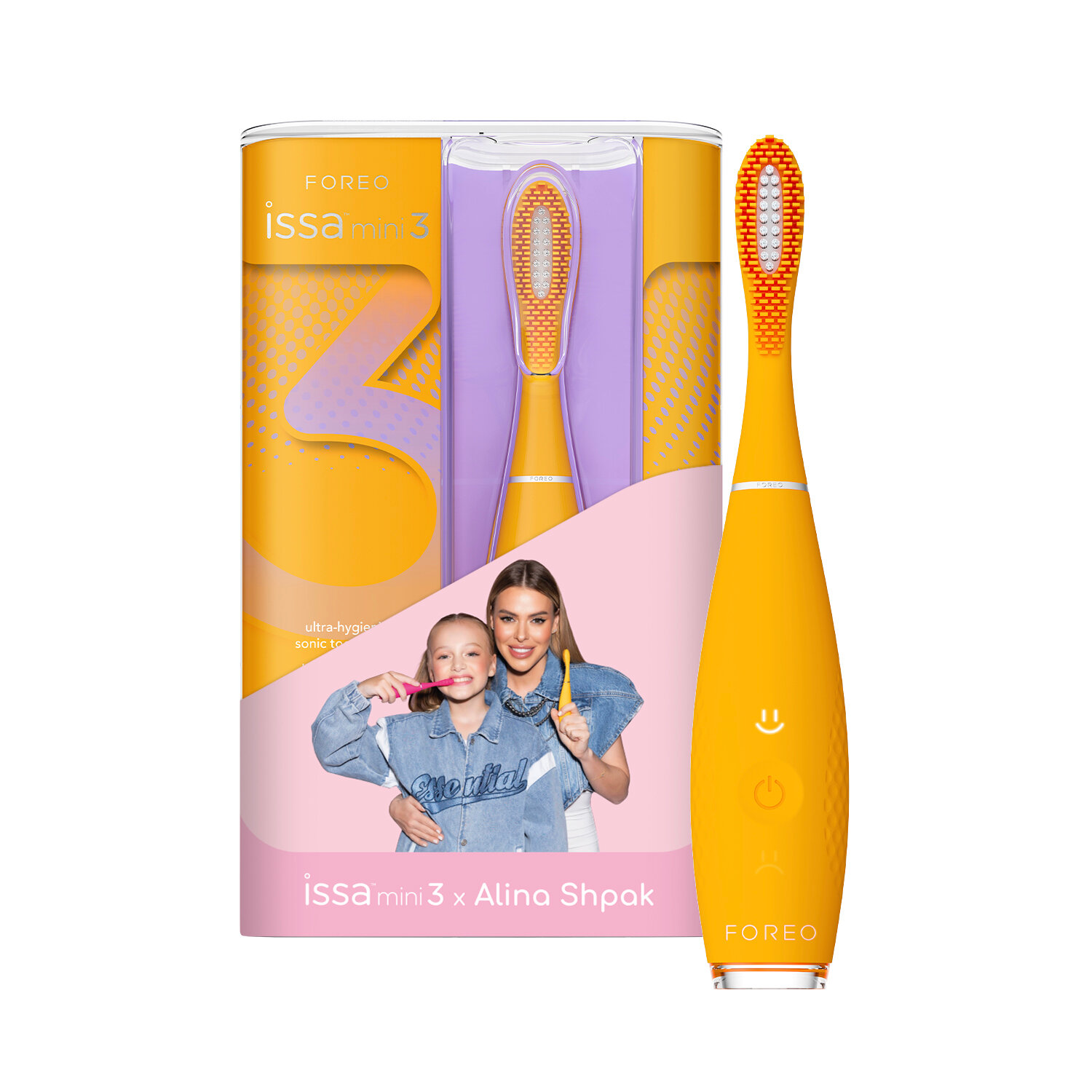 FOREO объединяется с тренером по дыхательным гимнастикам Алиной Шпак и представляет лимитированную линейку зубных щеток ISSA mini 3 x Alina Shpak. Эти щетки помогут легко выработать привычку чистить зубы регулярно, а также идеально подойдут и детям, и взрослым. Что понравится детям: яркие цвета, тактильно приятный силикон и выработка привычки дентальной гигиены в интерактивном формате. Что понравится взрослым: звуковые пульсации для эффективного очищения, силиконовые щетинки для чувствительных зон, удобная форма, запрограммированные 2 минуты чистки и напоминания о процедуре. “Проснулись, почистили зубы, подышали по #шпакметод! Для нас с Есенией – это не только привычный ритуал, но и время вместе, когда мы можем покривляться у зеркала и пританцовывать под любимую музыку. C ISSA mini 3 от FOREO эти несколько минут делают жизнь и улыбку здоровой и яркой!” С любовью, Алина и Есения Шпак ПРЕИМУЩЕСТВА: