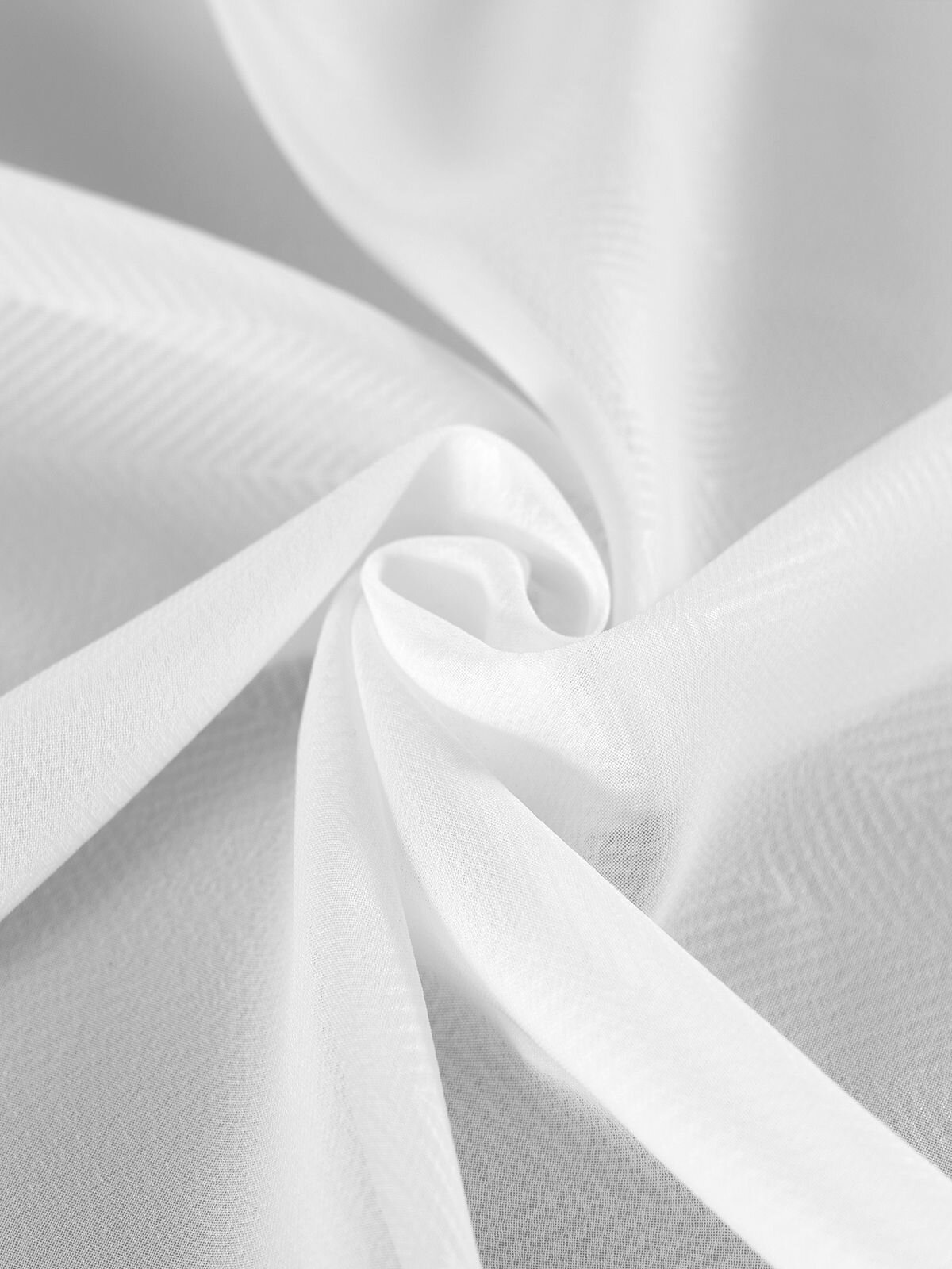 Легкий, мягкий тюль из белой вуали. Вуаль с матовой полупрозрачной текстурой. Отличается особым шиком, идеально подходит для создания воздушных штор. Придает ощущение свежести, хорошо пропускает воздух. Ткань неприхотлива в уходе, хорошо стирается без разрушения волокон с течением времени за счет высокого кручения нитей.