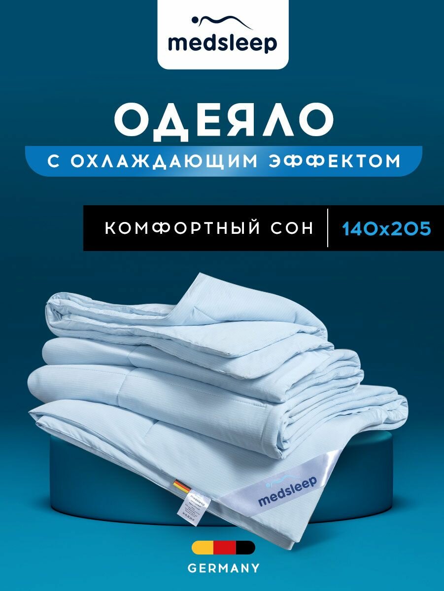 Одеяло «Джерси Кул» 140х205 см бренда MEDSLEEP имеет чехол из 90% нейлона, 10% полиэстера, а также наполнитель из 100% микрогеля Airsoft плотностью 150 г/м2.Микрогель Airsoft — инновационный наполнитель, который отличается формоустойчивостью и долговечностью, а также не вызывает аллергии. Благодаря такому наполнителю одеяло легко восстанавливает свой объем, а высокая воздухопроницаемость, влагостойкость и теплоемкость создают комфортные условия для сна. Одеяло «Джерси Кул» с микрогелем мягкое, легкое и одновременно упругое. Особая конструкция этого полого внутри волокна создает объем и воздушность, которые сохраняются на протяжении всего срока службы изделия. Плотность наполнителя составляет 150 г/м2. Постельные принадлежности с климат-контролем рекомендованы людям с ослабленной терморегуляцией (детям и пожилым людям). Одеяло всесезонное и имеет отличную терморегуляцию, так необходимую для сна и отдыха в любое время года, будь то зима или лето, осень или весна.Чехол одеяла изготовлен из 90% нейлона и 10% полиэстера. Нейлон - это инновационный, легкий и приятный к телу материал с охлаждающим эффектом, который стал достойной альтернативой натуральному шелку. Такая ткань сочетает в себе прочность и эластичность, обладает удивительными охлаждающими свойствами. По своим эстетическим качествам материал не уступает прототипу: нейлон такой же мягкий, тонкий, гладкий, блестящий, как натуральный шелк. Ткань проста в уходе, устойчива к загрязнениям и стирать ее приходится редко.Одеяло «Джерси Кул» имеет стежку кассетного типа. Изделие выглядит аккуратно и эстетично благодаря брендированной окантовке, которая украшает и позволяет одеялу дольше держать форму.Одеяло «Джерси Кул» легко впишется в интерьер любой комнаты вашей квартиры, дома или дачи, а также послужит прекрасным подарком лучшей подруге, девушке, парню, маме, папе, сестре, брату, учителю, другу, родителям, воспитателю, коллеге без повода или по случаю какого-либо праздника: Новый год, 8 Марта, выпускной, День матери, 14 февраля, 23 Февраля, юбилей, годовщина.