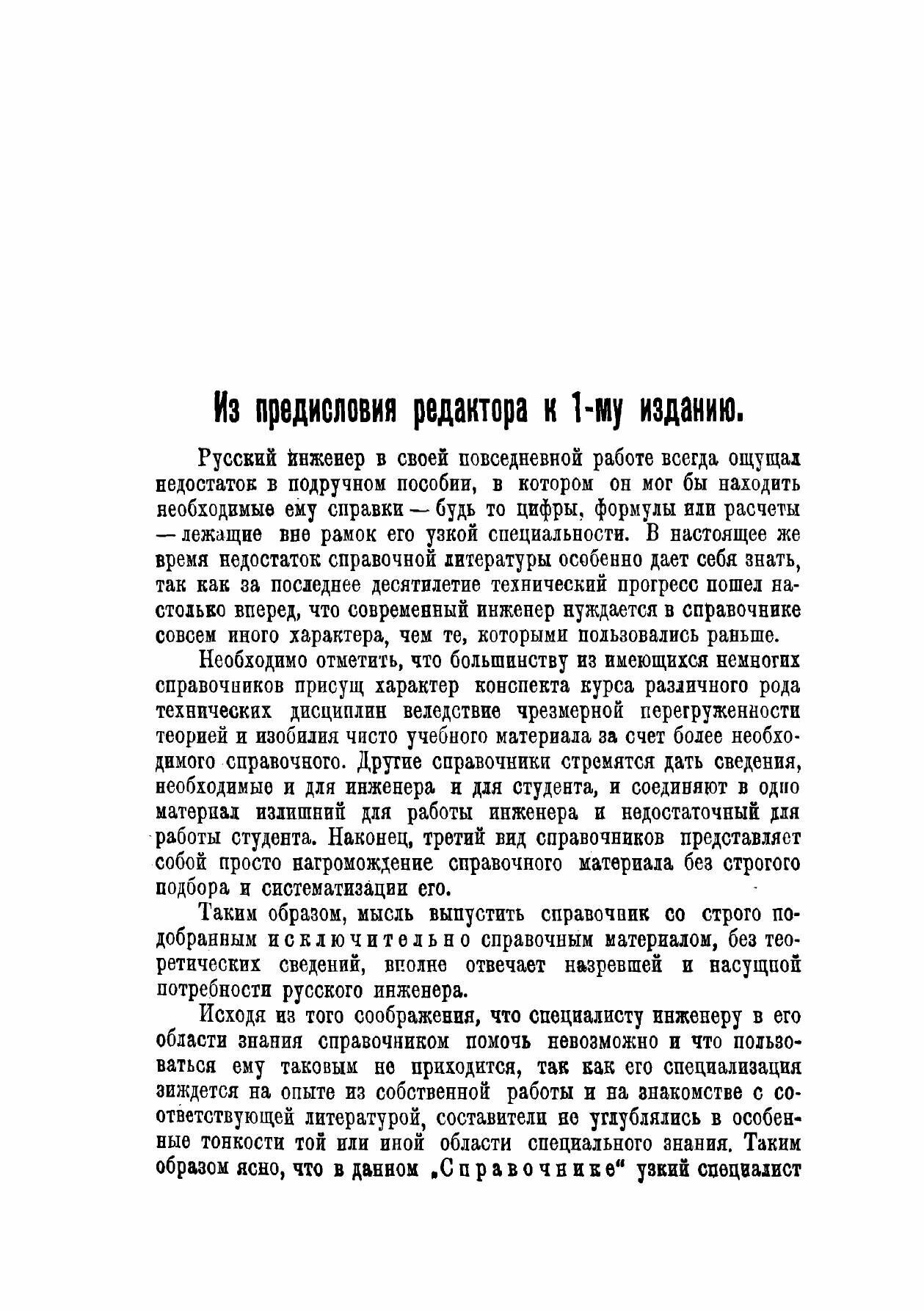 В данном справочнике, сравнительно небольшого размера в строго подобранной форме, самый важный справочный материал, необходимый инженеру в его обиходной работе. Информация представлена максимально удобной для пользования, преимущественно в таблично-цифровой системе, достаточно сжато, но не в обходимой полноте и при том так, что всякая справка, всякая цифра, может быть получена с наименьшими затратами времени.