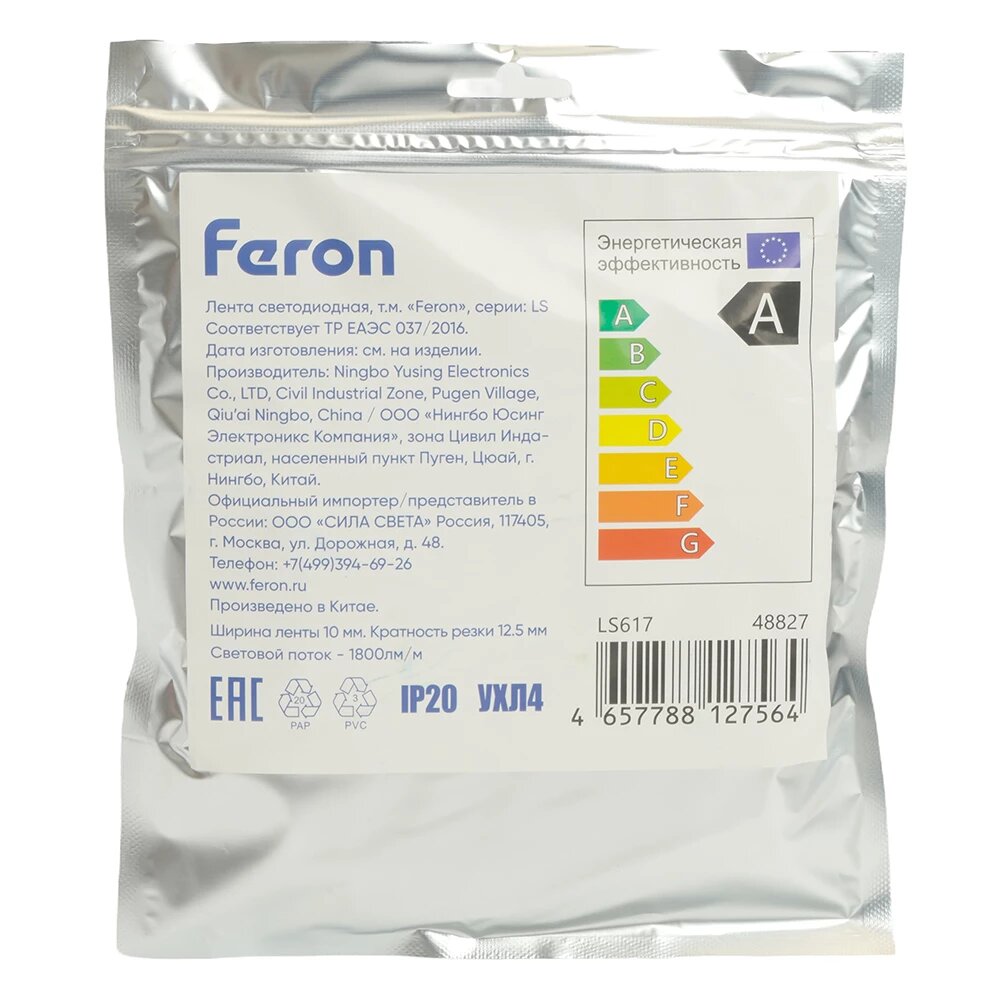 Лента с оптимальным индексом цветопередачи, обеспечивающим естественные и насыщенные цвета.Лента светодиодная 12V FERON LS617, 240*SMD2835 , 19W/m, IP20, 4000К (нейтральный белый), Кратность резки мм 12.5мм, 5000*10*1.22мм