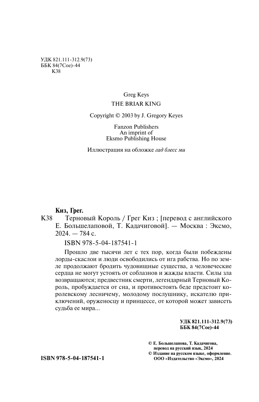 Книга: Терновый Король (Грегори Киз); Эксмо, Fanzon, Редакция 1, 2025