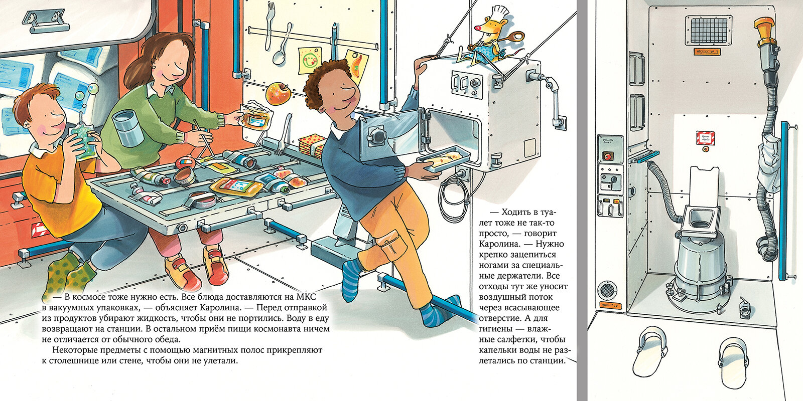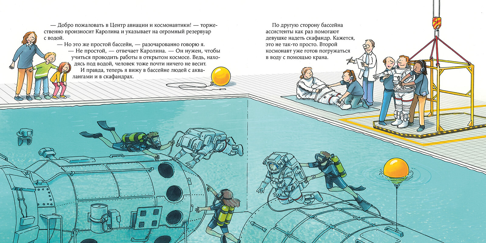 Все книги построены по принципу «один день из жизни…»: герои историй, дети, приходят в гости на работу к своим взрослым знакомым. В этой книге девочка Шарлотта вместе с мамой своего друга Каролиной знакомится с профессией космонавта. Вы узнаете, как космонавты готовятся к полету, сколько длится полёт космической капсулы, что находится в ранце для выхода в открытый космос и многое другое!