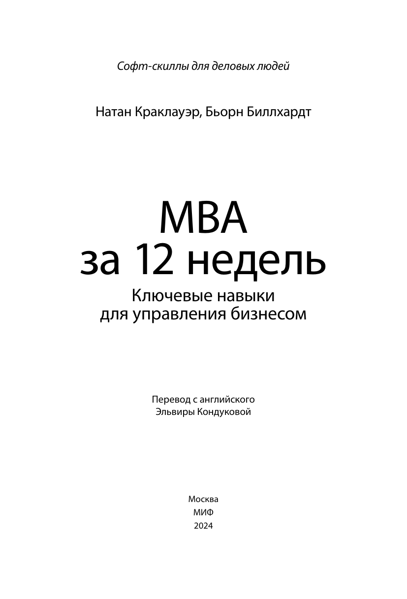 MBA за 12 недель. Ключевые навыки для управления бизнесом (Натан Краклауэр, Бьорн Биллхардт); Манн, Иванов и Фербер, 2025