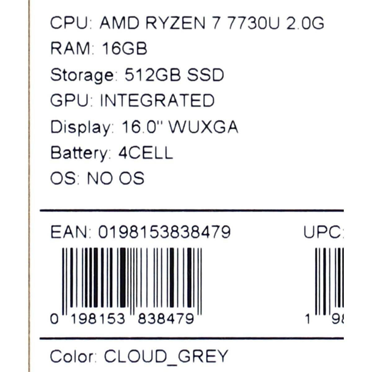 Ноутбук Lenovo IdeaPad Slim 5 16ABR8 Ryzen 7 7730U/16Gb/SSD512Gb/16.0"/IPS/WUXGA /NoOS/grey (82XG0097RK)