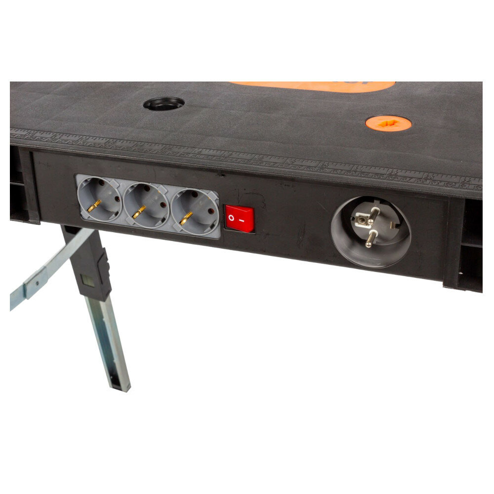Верстак Квалитет ВУС-940 универсальный складной предназначен для использования в домашних условиях и легкой промышленности. Выдерживает нагрузку до 150кг. Может использоваться в 4 режимах: верстак, козлы для пиления, строительные леса, автомобильная тележка. В верстак встроены розетки европейского стандарта с кнопкой выключения питания. Изделие легко транспортировать и эксплуатировать благодаря небольшому весу и складной конструкции.