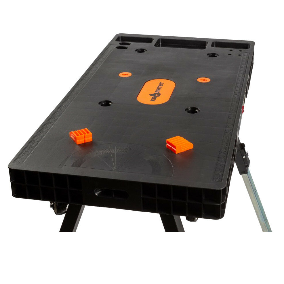 - Многофункциональность - может использоваться в 4 режимах: верстак, козлы для пиления, строительные леса, автомобильная тележка