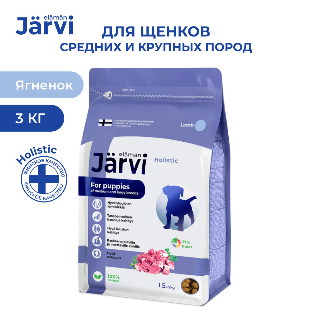 Jarvi сухой полнорационный корм для щенков средних и крупных пород (Ягненок 12 кг.)