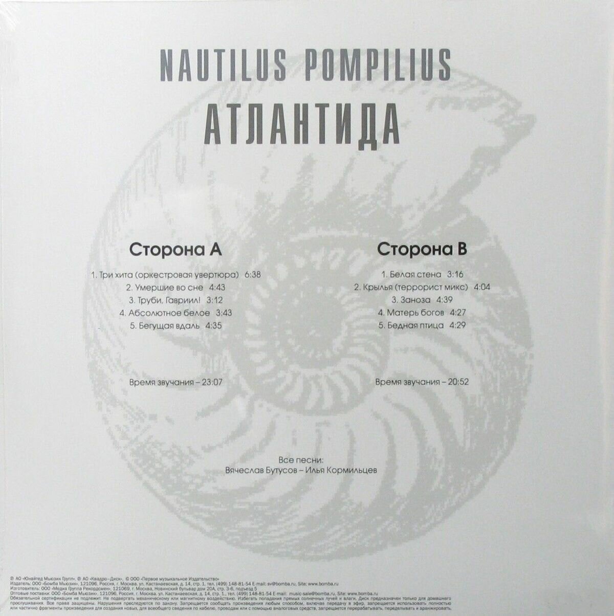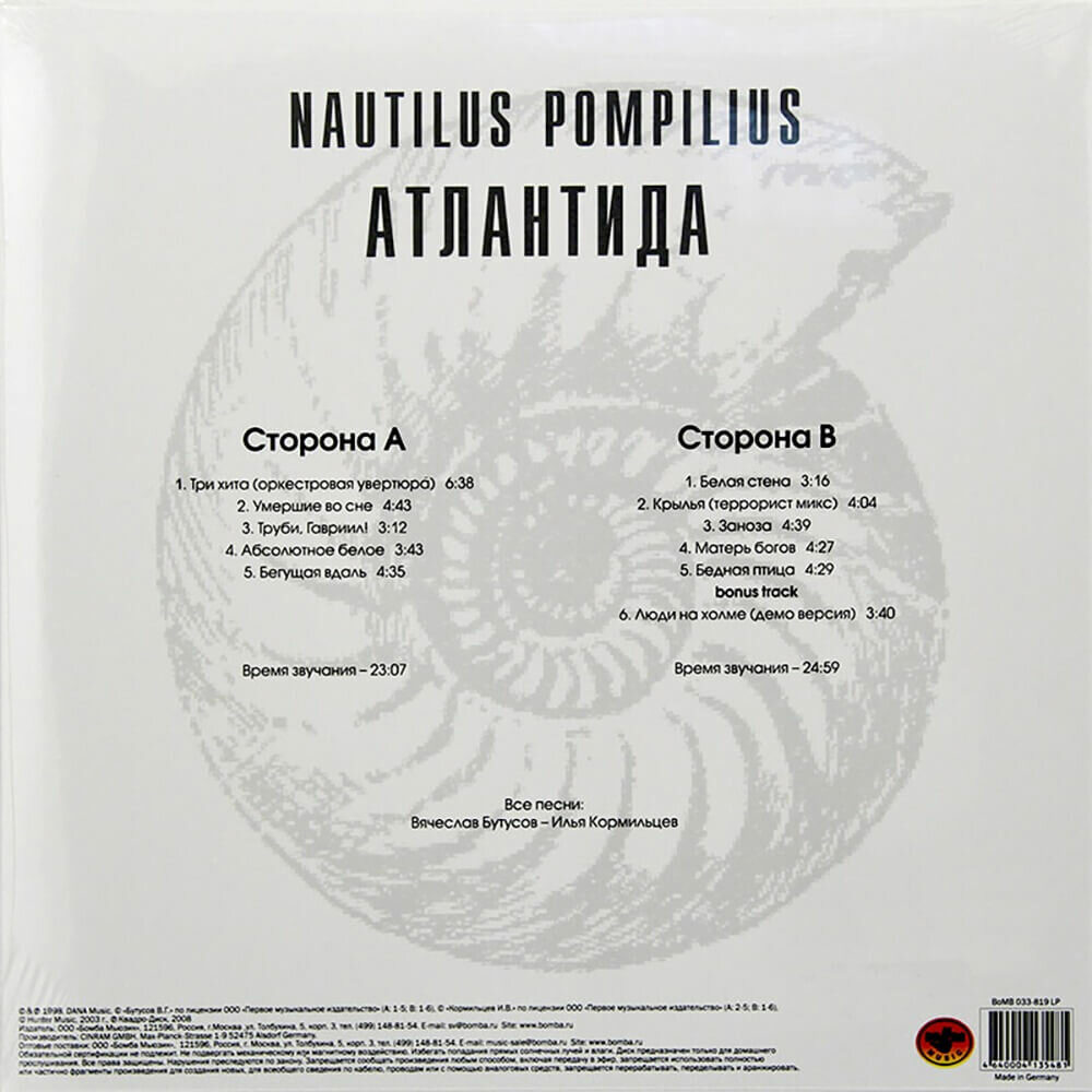 Сервис сравнения цен СкидкаГИД предлагает сравнить цены на товар «Рок Bomba Music НАУТИЛУС ПОМПИЛИУС - Атлантида (White Vinyl) (LP)»