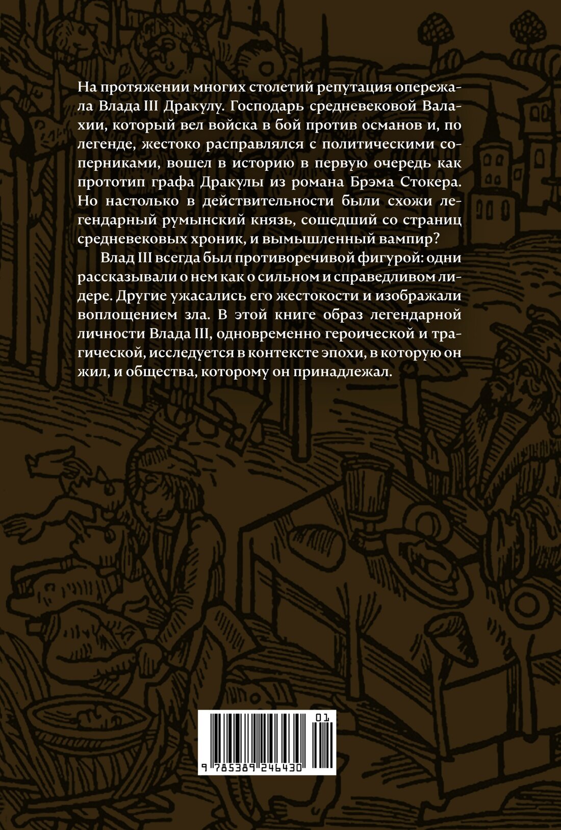 Эпоха Средневековья породила много легенд и героев. Одним из самых знаменитых средневековых персонажей был и остается Влад III Дракула — румынский князь, который трижды занимал престол Валахии, воевал с Османской империей, противостоял натиску султана Мехмеда II. Его изображали святым. Его считали грешником. Он стал прототипом знаменитого графа Дракулы в романе Брэма Стокера. О нем снято бессчетное количество фильмов: одних только полнометражных — около 150. По сей день образ Влада III представляет загадку для исследователей. В этой книге автор приподнимает завесу мифа, окружающего человека, который гордо подписывался именем «Дракула».