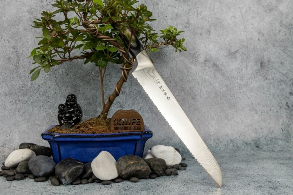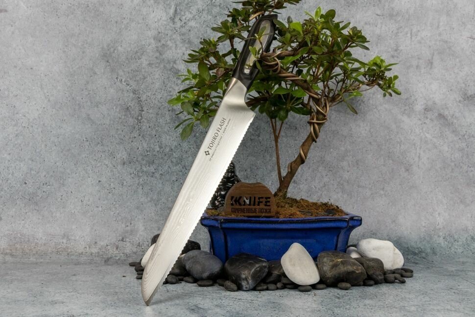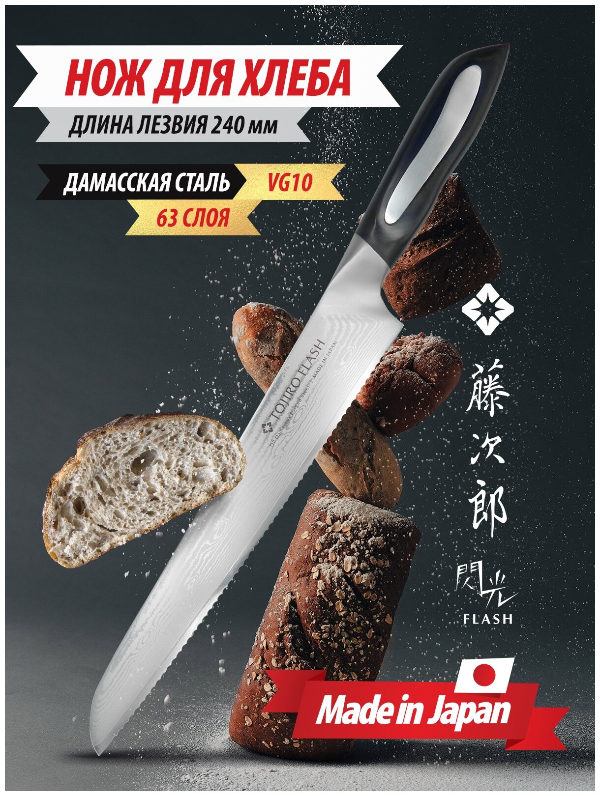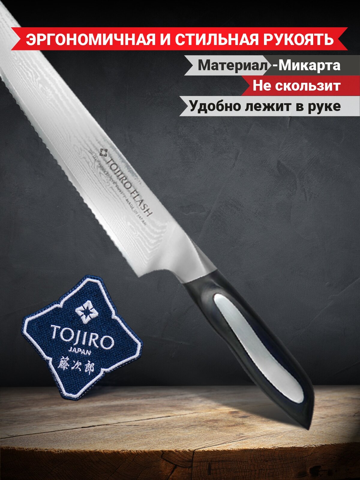 Нож для хлеба Tojiro Flash 240 мм сталь VG10 63 слоя рукоять микарта #9000 FF-BR240