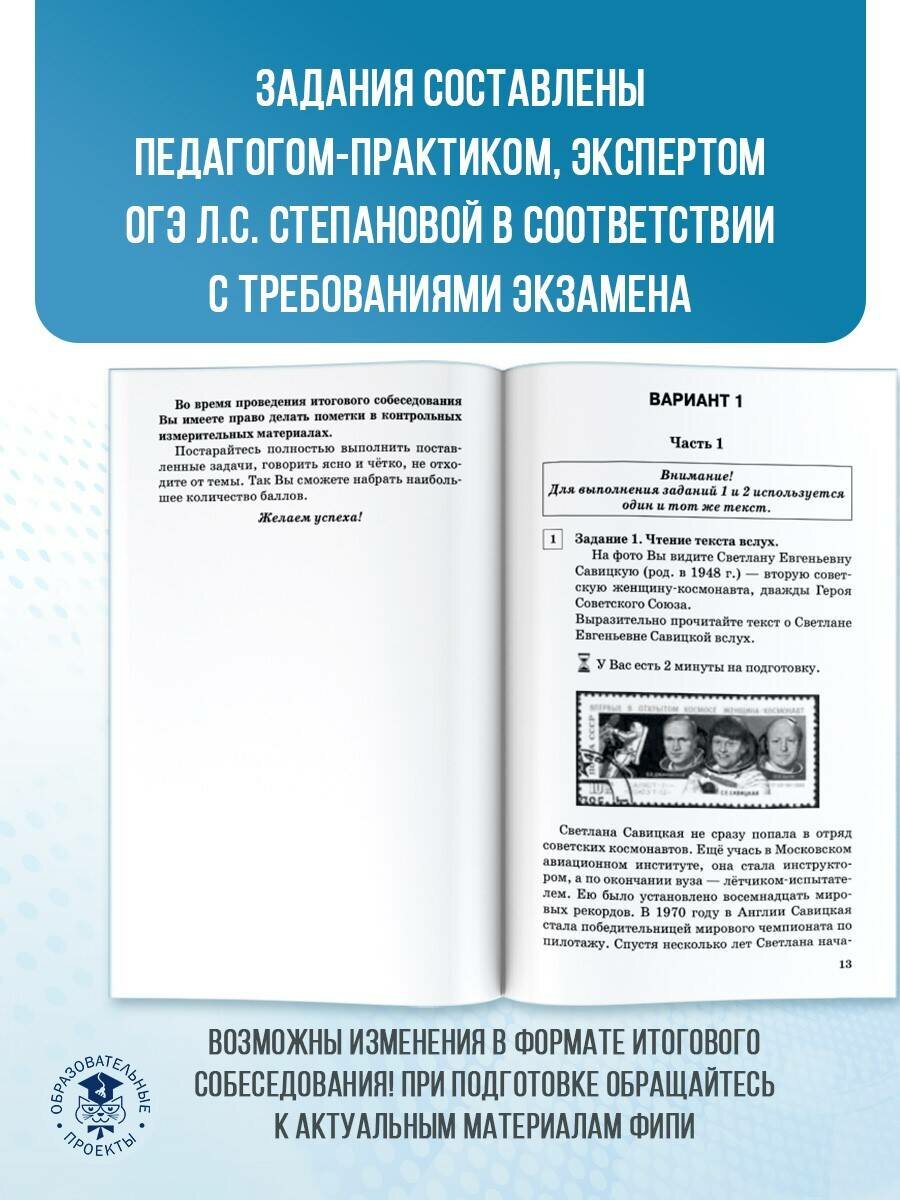 ОГЭ. Русский язык. Подготовка к итоговому собеседованию перед основным государственным экзаменом (Степанова Людмила Сергеевна); Образовательные проекты, 2024