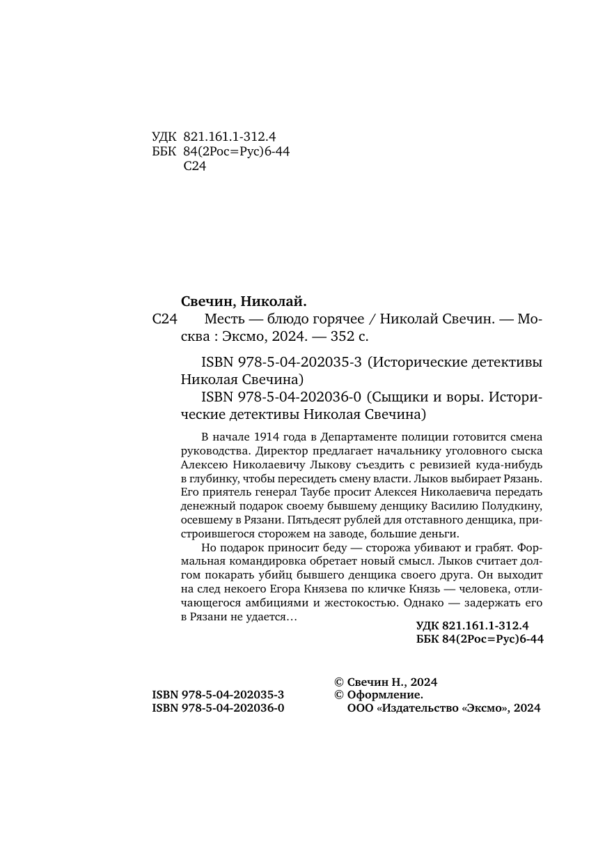 Книга: Месть - блюдо горячее (Николай Свечин); Эксмо, 2024