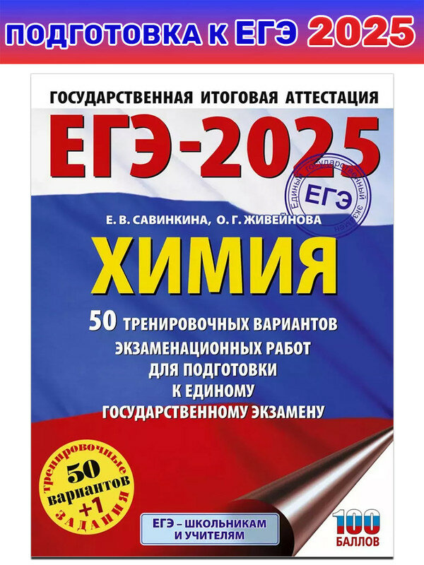 ЕГЭ-2025. Химия. 50 тренировочных вариантов экзаменационных работ для подготовки к единому государственному экзамену (Ольга Геннадьевна Живейнова, Елена Владимировна Савинкина); Образовательные проекты, 2024